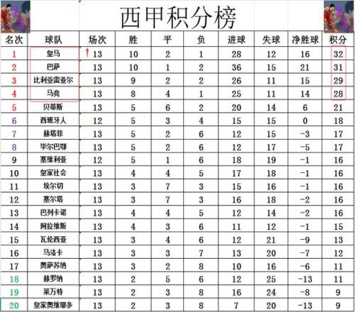 西甲最新积分战报又被弱旅逼平!皇马连场爆冷只领先巴萨1分