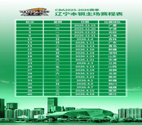 辽宁本钢队主场赛程表